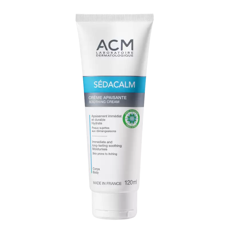 La crème apaisante Sédacalm soulage rapidement les sensations de démangeaisons dès la 1ère application et de façon durable. Grâce à son complexe unique apaisant X-CALM, elle procure un effet fraicheur immédiat + un effet calmant durable. Sa galénique enrichie en actifs émollients répare la barrière cutanée, protège la peau et restaure sa souplesse.