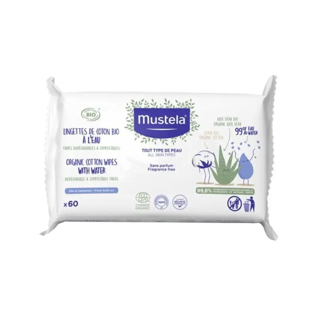 MUSTELA LINGETTES DE COTON BIO À L’EAU *60 د.م. 102.99